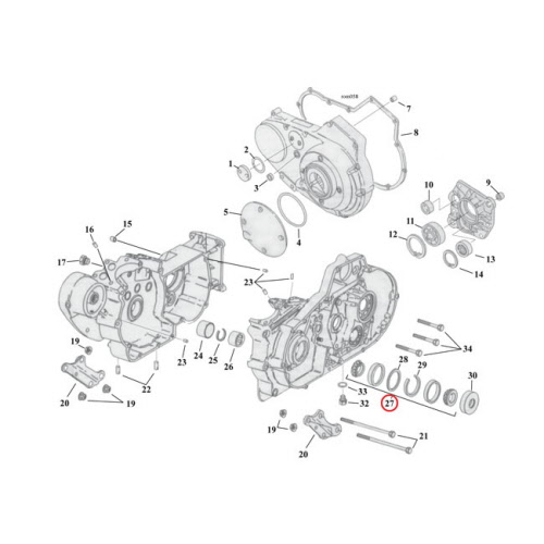 Timken vasemman lohkopuolen laakerisarja, sopii Sportster ja K-mallit 1977-2003. Korvaa H-D Oem. 24729-74.