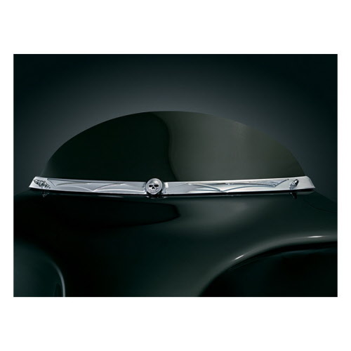 Tuulilasin kromattu koristelista pääkallokuviolla. Helppo kiinnittää mukana seuraavien ruuvien avulla. Sopii H-D malleihin FLHT, FLHTC, FLHTCU ja FLHX 1996-13.