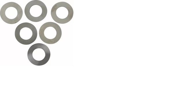 Lajitelma välyksensäätölevyjä. Kartiorullalaakereiden oikea välys tulee säätää näillä. Sopii 3/4" akseleille edessä ja takana. Mukana on seuraavat koot: 0,20 mm (0,008"), 0,41 mm (0,016"), 0,71 mm (0,028"), 0,05 mm (0,002"), 0,10 mm (0,004"), 0,58 mm (0,23"). Suositeltava minimivälys on 0,15mm.